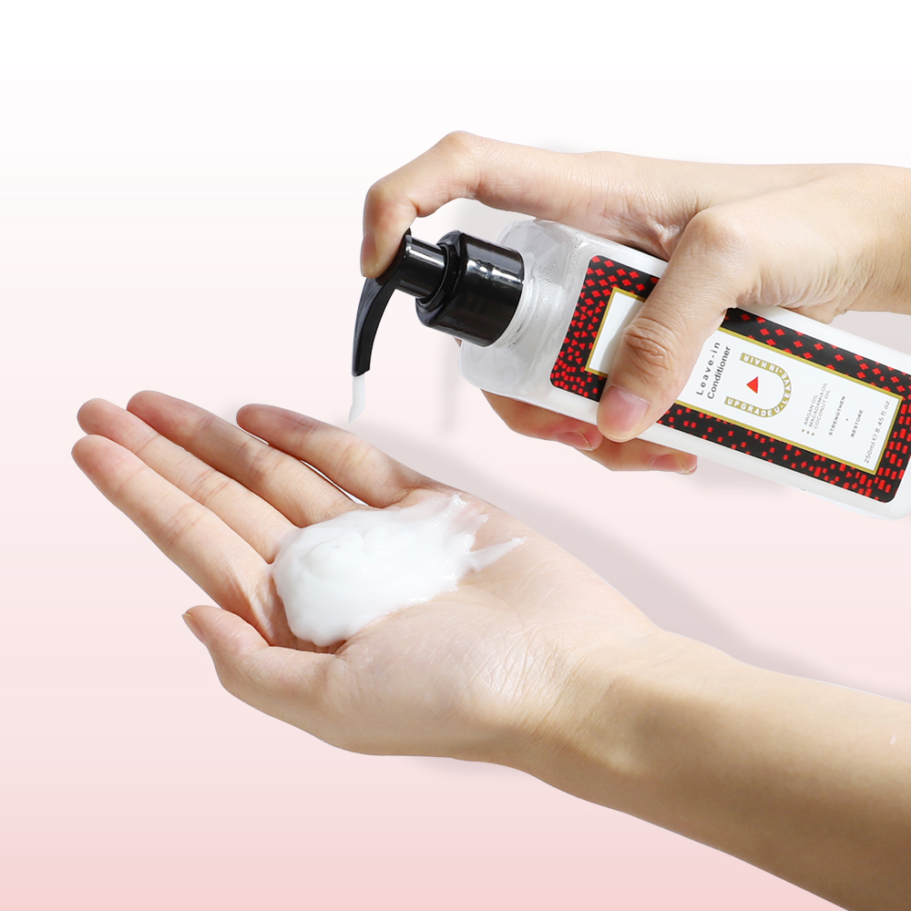 - Dispense Conditioner: Start by applying a suitable amount of the leave-in hair conditioner onto your palm.