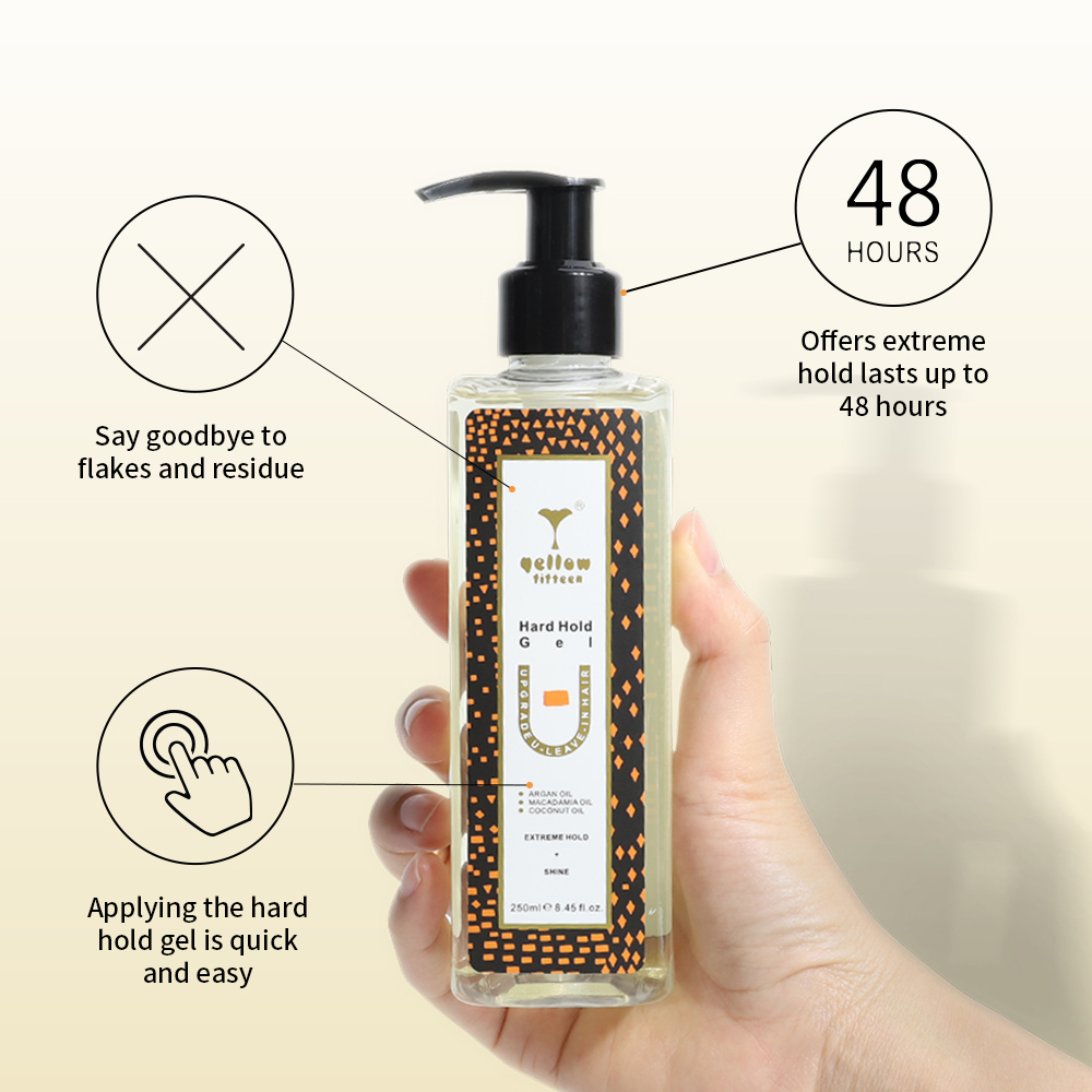 The hard hold gel is designed for all hair types, offering a flake-free formula with extreme hold and a high-shine finish that lasts up to 48 hours. This gel provides unparalleled control and definition, allowing you to create and maintain any style with confidence. Whether aiming for a sleek look or a bold style, it ensures your hair stays vibrant and glossy.