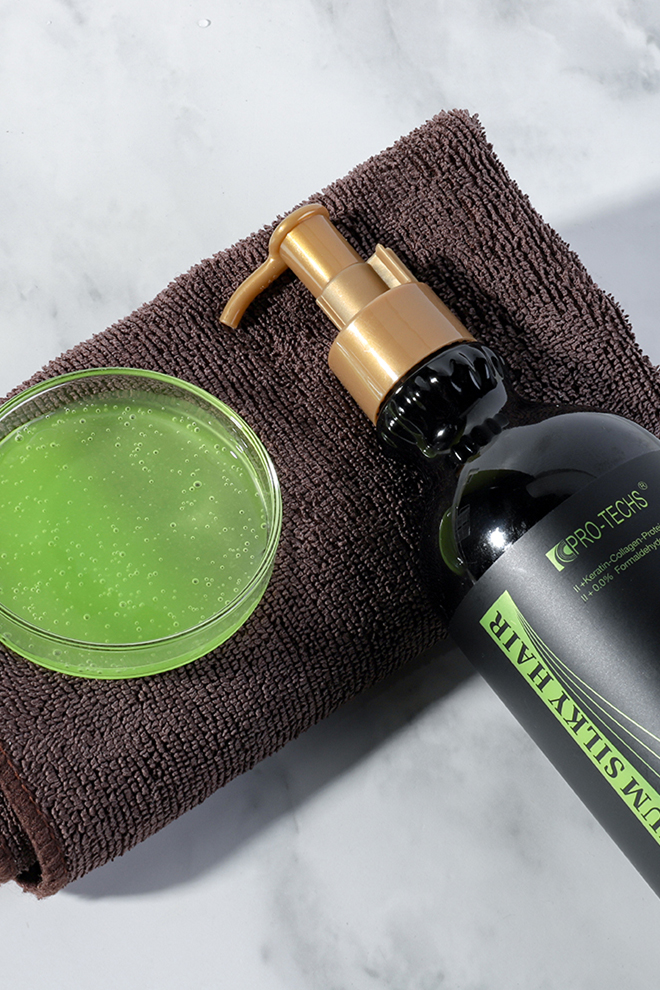 With a guaranteed 0% formaldehyde release, this treatment ensures your safety and provides a healthy, toxin-free experience. The PRO-TECS premium silky hair system acts as a remarkable reconstructor and volume reducer, eliminating frizz while leaving hair straight, shiny, and healthy for three to four months. Suitable for all hair types, it strengthens the hair shaft, enhances elasticity, and nourishes, transforming your hair from within.